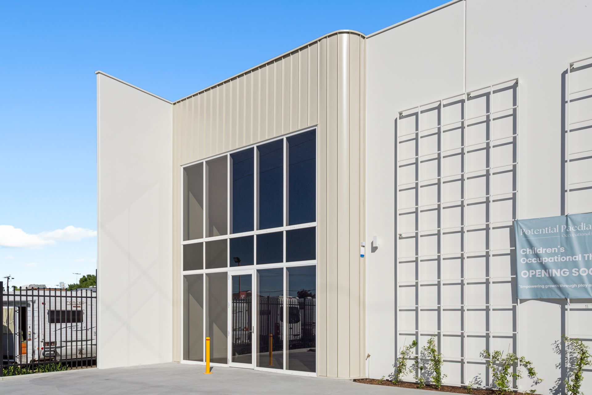 Warehouse 8 metre high roof with rear Roller Door and Remote Control Access